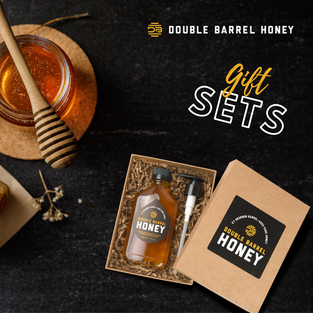 The Mini Triple Double Barrel Honey Gift Set includes our original Mini Double Barrel Honey, aged for 90 days; Mini Special Edition Double Aged Honey, aged for 180 Days; and our Mini Limited Edition Gold Label Honey, aged for 12 months.